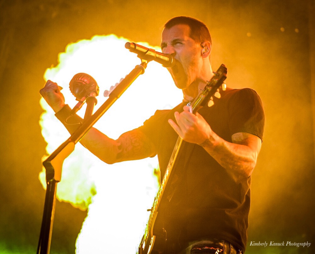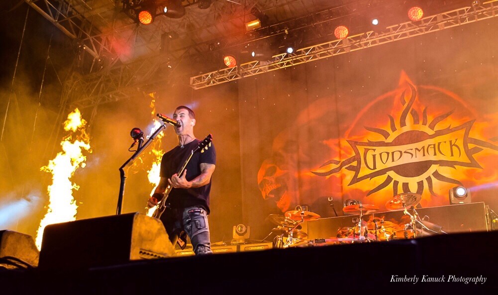 The Southside of Bethlehem was filled with the sounds of hard rock and heavy metal last night as Musikfest entered into its sixth night of performances. Another Day Dawns (from our very own Lehighton, PA) and Like A Storm kicked off the show. Both bands brought high energy, strong vocals, and powerful guitars, which got the fans hyped up for the main act. When Godsmack took the stage, fans were more than ready to bang their heads, sing along, and throw up the horns! For those unfamiliar with Godsmack, they have had three consecutive number-one albums (Faceless, IV, and The Oracle) on the Billboard 200. They also had over 20 top ten hits. They played many of these popular hit songs like “Voodoo,” “Awake,” and “I Stand Alone.” The band did a great job engaging with the audience throughout the show. At different times they asked their fans to sing along and even to start swaying to the music so that they could capture footage for an upcoming video. This was their last live performance before they return to the studio to record their 7th album in October. Godsmack made sure to bring their passion and energy into this last show and did not disappoint fans. They even had pyrotechnics and fireworks to go out with a bang!