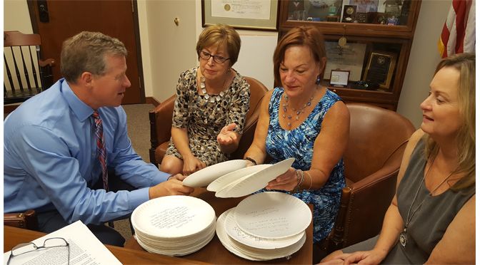 Allentown, PA, August 16, 2017 – Meals on Wheels of Lehigh and Northampton Counties joined local Meals on Wheels programs from across the country in a coordinated paper plate delivery designed to send a powerful message to Congress about the impact of Meals on Wheels. Throughout the week of August 14, home-delivered and congregate meal programs have been delivering stacks of paper plates bearing handwritten notes directly to their Members of Congress, calling for the protection and increase of critical federal funding sources for Meals on Wheels.