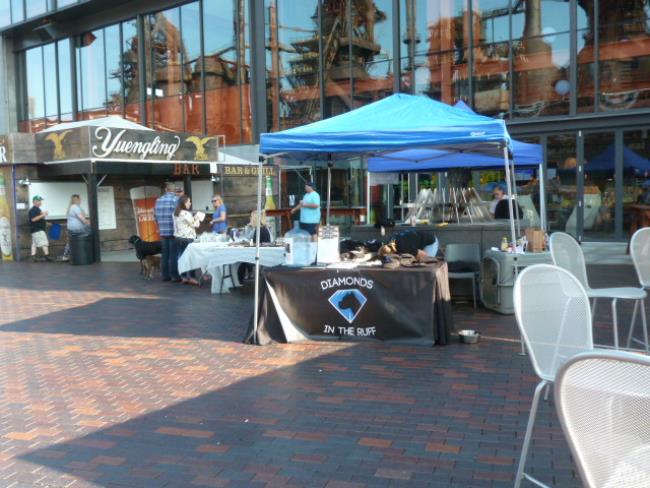 Today as summer winds down, the dogs got to celebrate the dog days of summer. Paws 4 A Beat was held today at Artsquest Patio. There was food, music, vendors and dogs. Lots of dogs. The event was held from 1PM to 6PM. There was a great band there called Girl Crue, they played a variety of cover songs from Bruno Mars to Fleetwood Mac. They kept the crowd going and the dogs seemed to enjoy them. The event was packed as many owners walked around with all kinds of dogs from Pitbulls to Rottweilers. I had the honor of meeting one of the cutest dogs ever, Chunk who was there with his owners. The weather was a good day for the dogs as some of the dogs just lounged and others were curious. Artsquest Patio is always such a great location for any event however, this one belonged to the dogs.