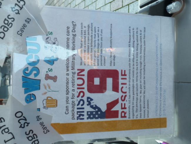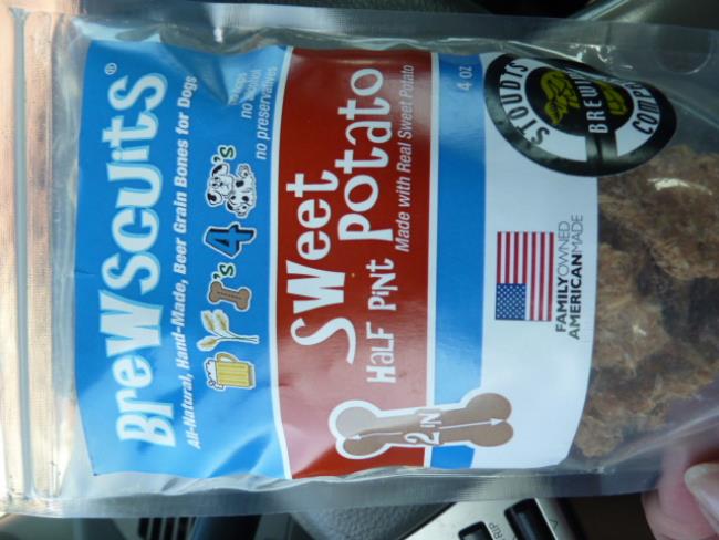 Brewscuits: All Natural, Hand-Made Beer Grain Biscuits for dogs. They had various snacks and they work with military dogs. Go to www.brewscuit.com