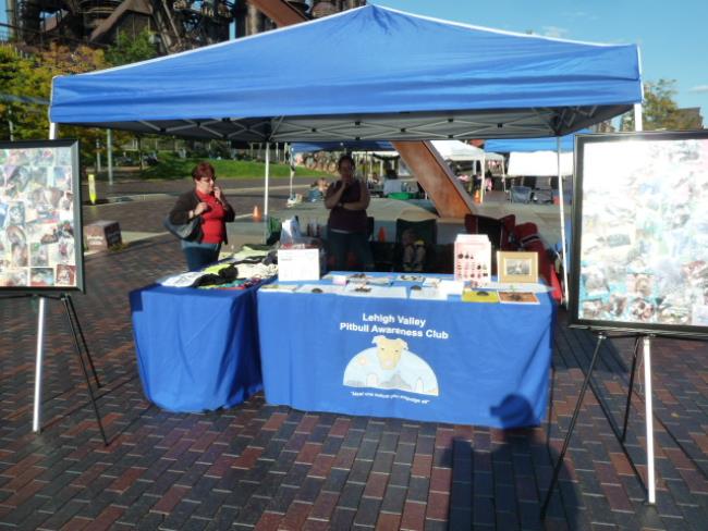 The Lehigh Valley Pitbull Awareness Club in which the motto is: “Meet one before you misjudge all.” There were plenty of beautiful PitBulls walking around. All the dogs had to wear a leash and they were required to be up-to-date with shots. I met Dave and Donna. Both of them spoke with me. “The LV Pit Bull Awareness Club is an educational group working to inform the general public and help push aside the negative stigma and myths associated with pit bulls. www.LVPitbullClub.com