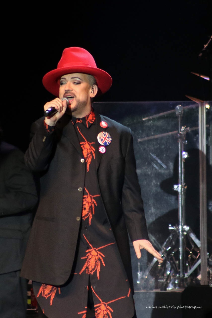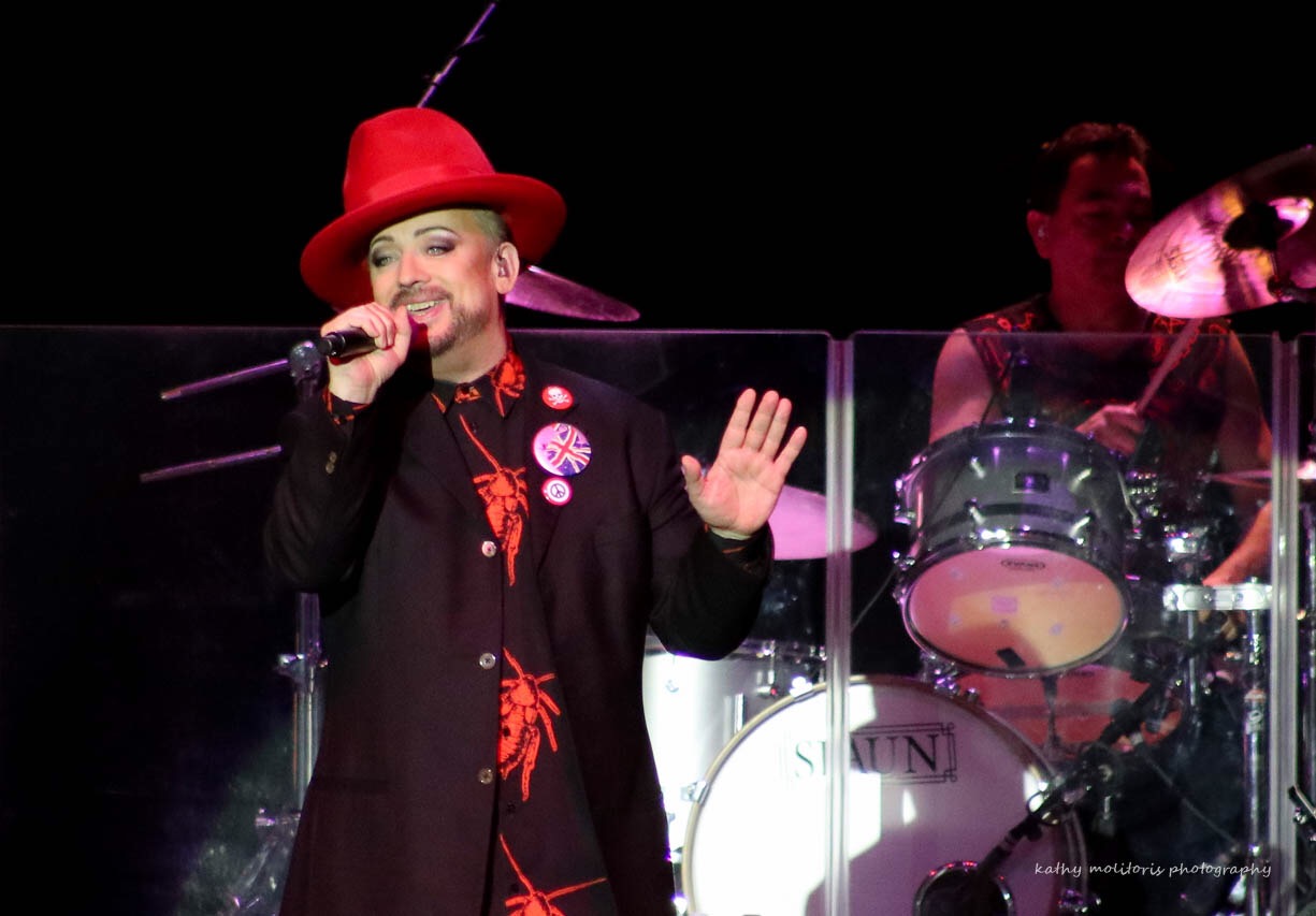 Boy George and the other three band members were backed up by a horn section, extra keyboards and guitar, percussion and a trio of singers.