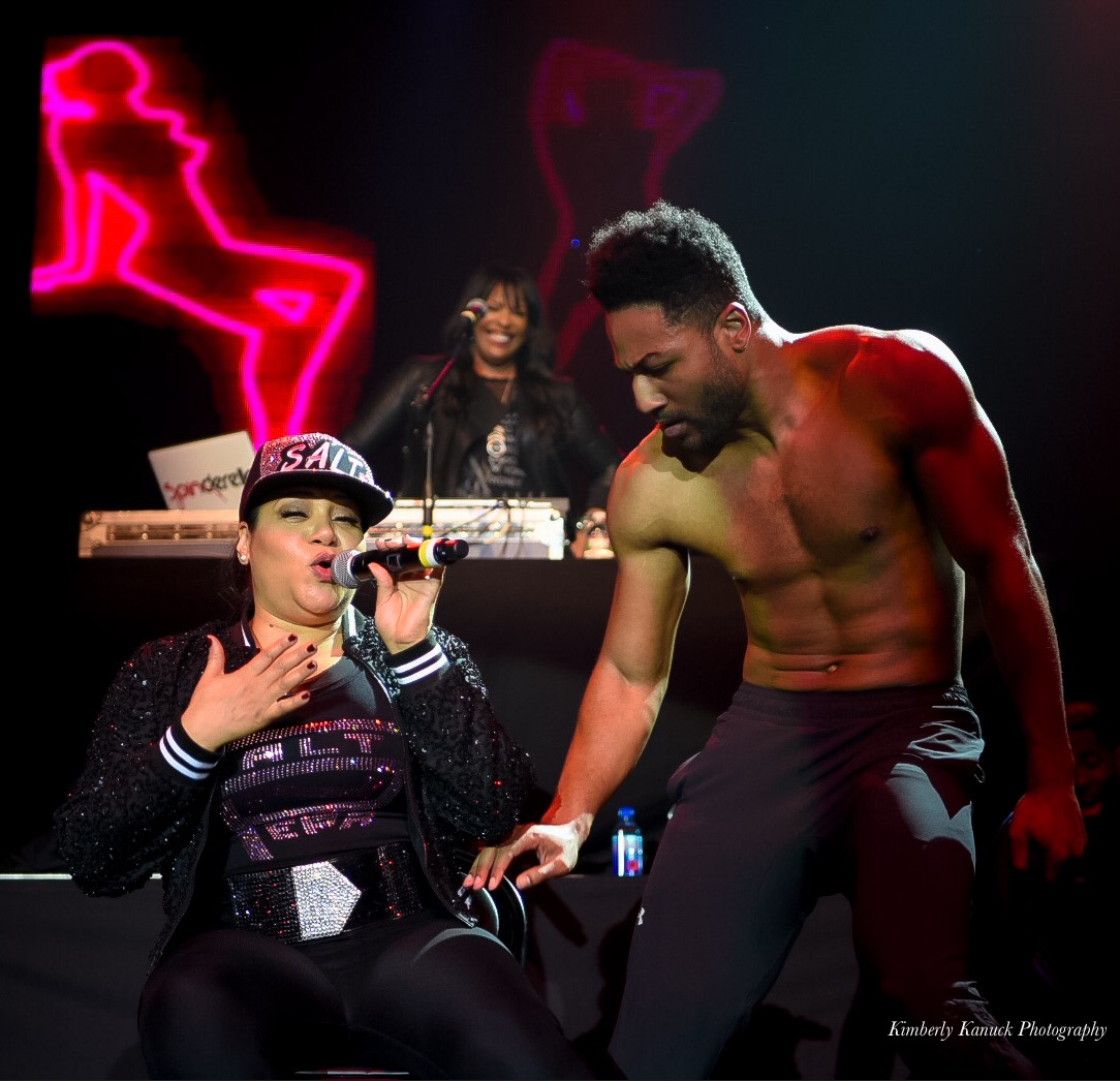 It was standing-room only and it was packed from the front to the back. It started with a DJ who just so happens to be the amazing Spinderella’s brother. He played a few classics and some newer songs for the crowd who was so hyped. I don’t think I have ever seen a crowd this excited, enthusiastic and just happy. People were letting loose and if one person in the whole building had any worries or anything negative going on, you would never know it! They also invited fans up who purchased V.I.P. bracelets for Vanilla Ice and those who purchased Salt N Pepa t-shirts. You got invited to dance on-stage with these legendary acts.