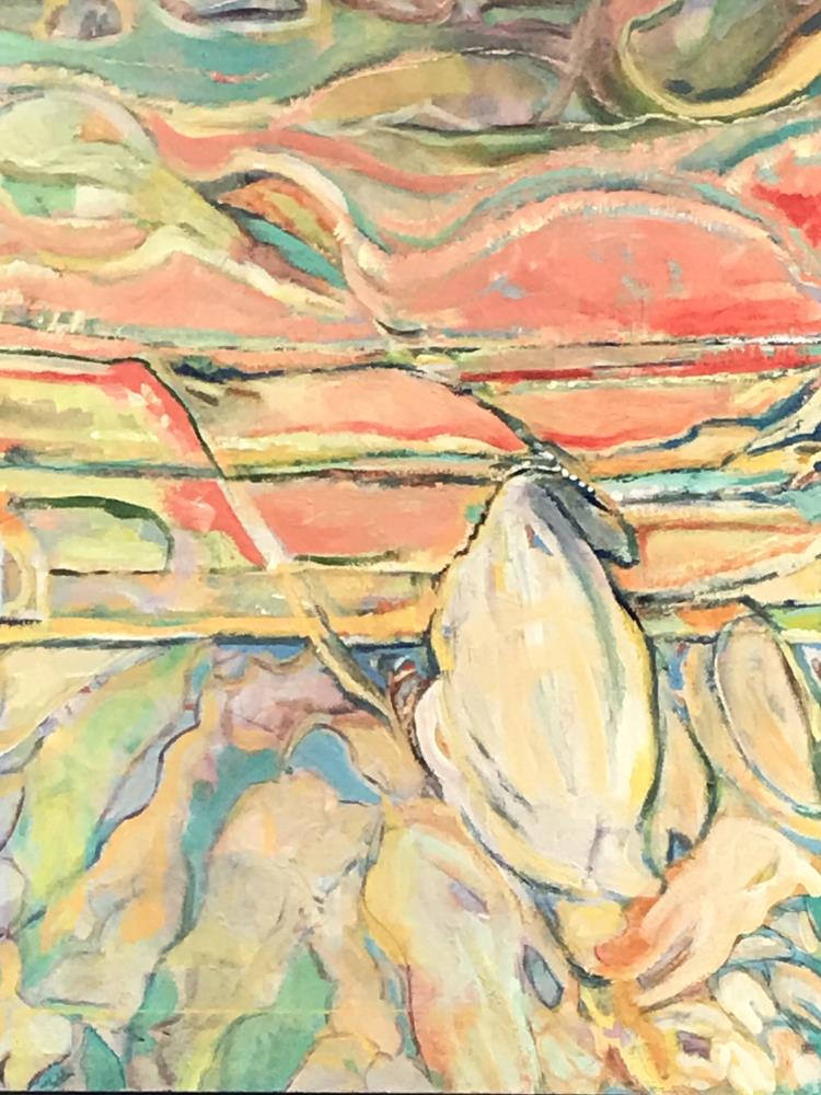 The exhibit of nine canvases meld a fervent, optimistic color palette. A native of Bethlehem, Cantelmi earned a BFA from the NY State College of Ceramics at Alfred University, Alfred, NY. Her work is in private and corporate collections from Boston to Miami, the Lehigh Valley, Seattle and Brooklyn.
