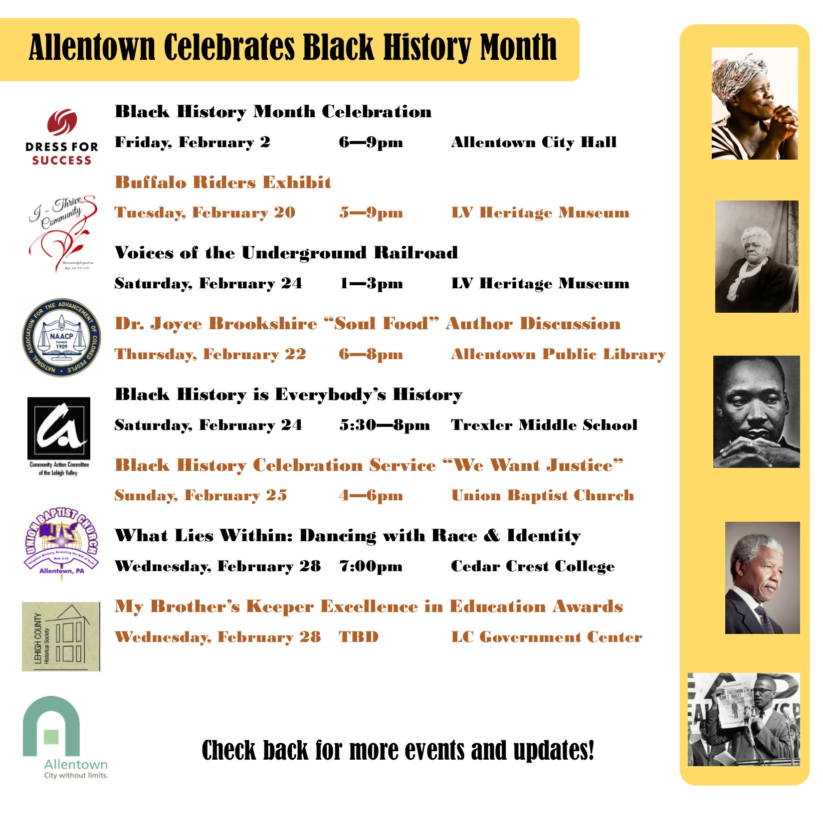 The City of Allentown is partnering with community leaders in Allentown to bring together a calendar of events marking Black History Month throughout the city.
