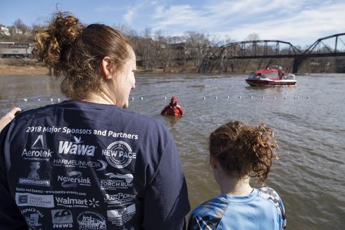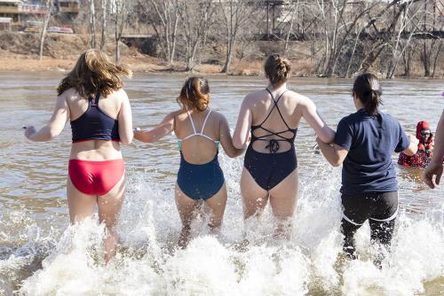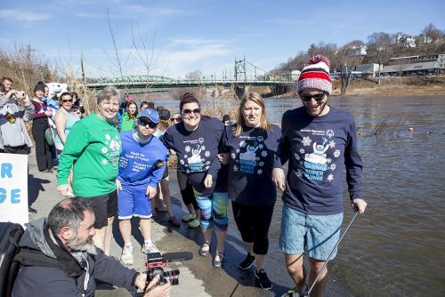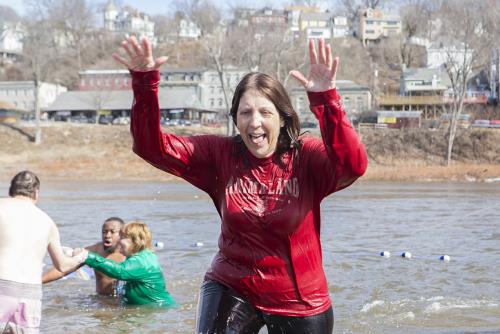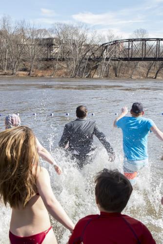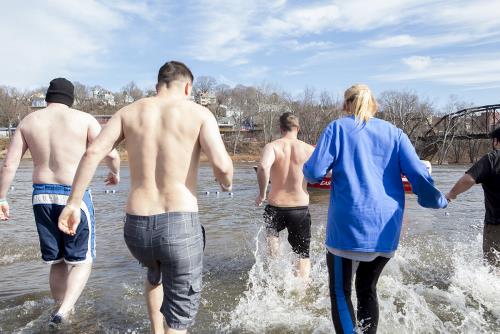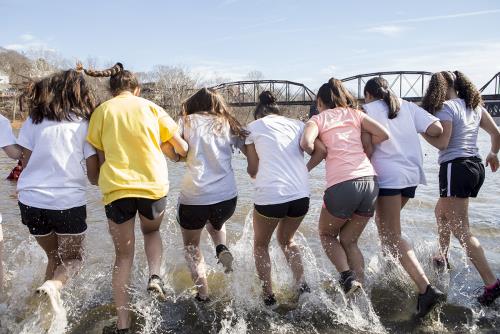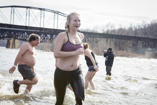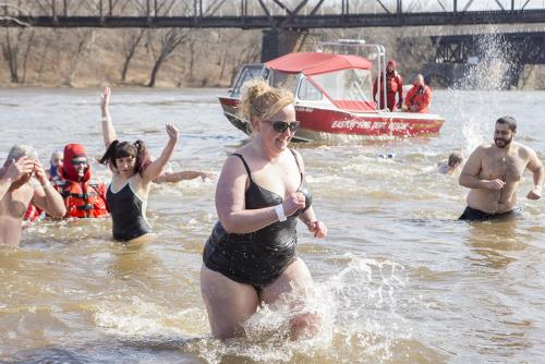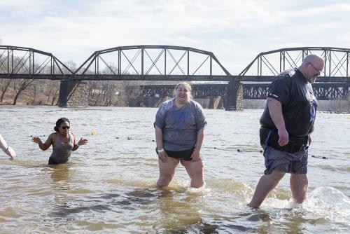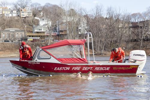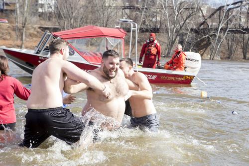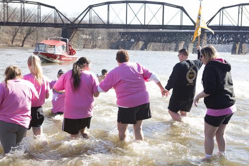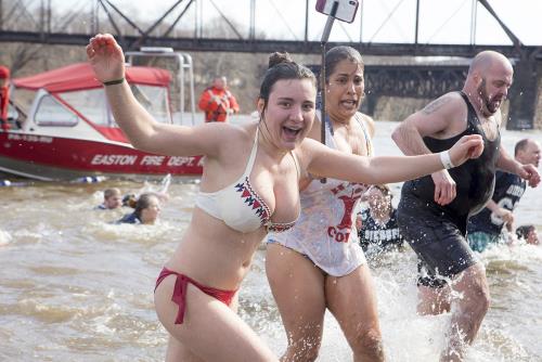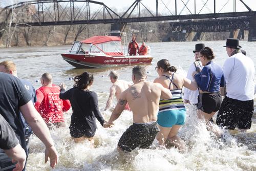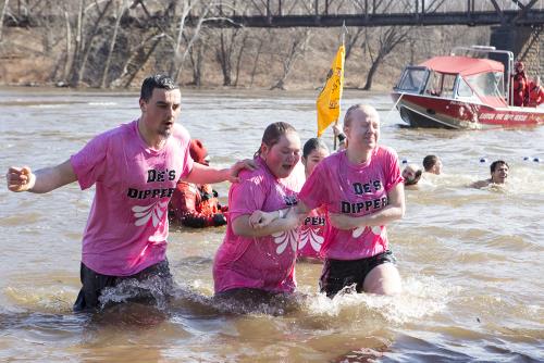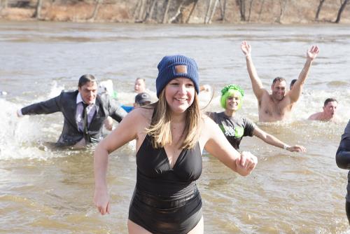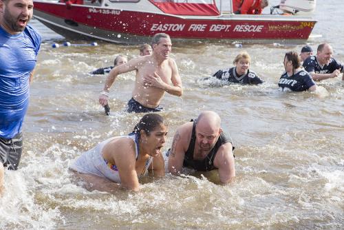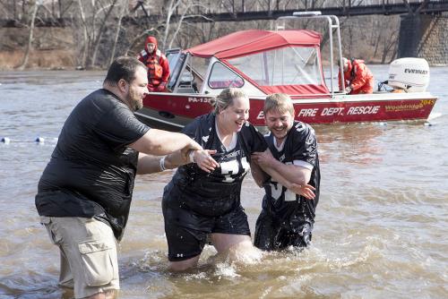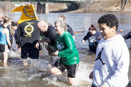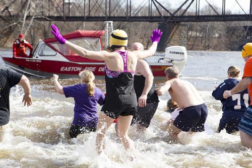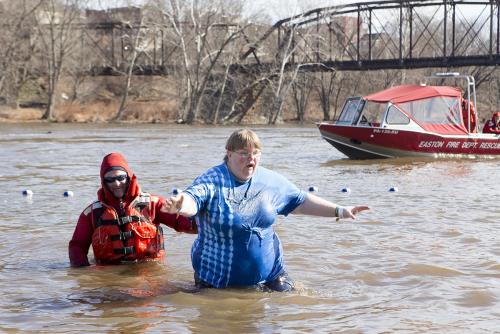 The Lehigh Valley Polar Plunge was held today at Scott Park on Larry Holmes Drive in Easton. The fundraising event was held in support of Pennsylvania Special Olympics. The event is one of nine plunges taking place statewide to raise money and awareness about Special Olympics programs. These programs enrich the lives of nearly 20,000 athletes across Pennsylvania.