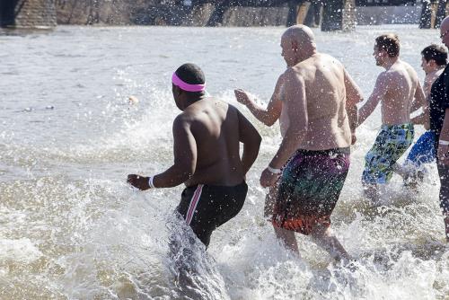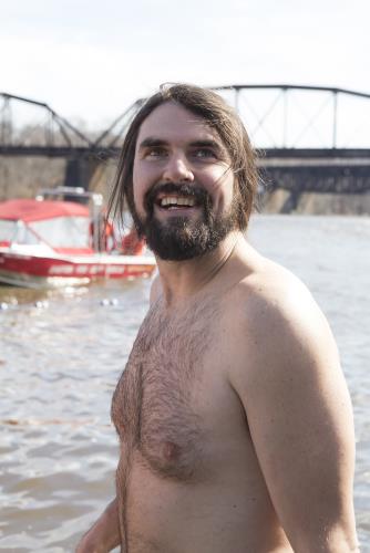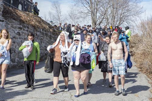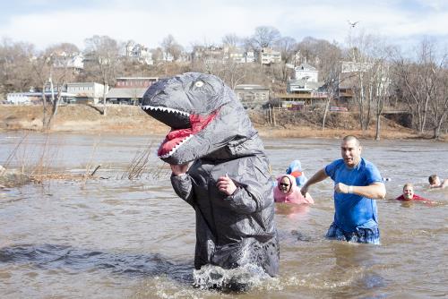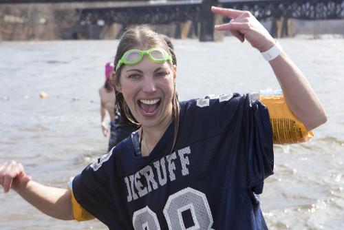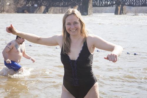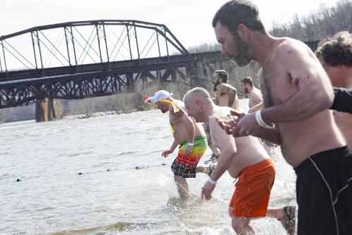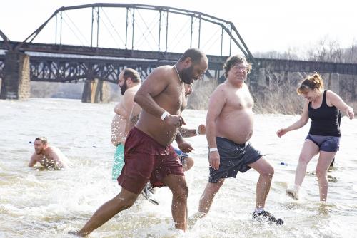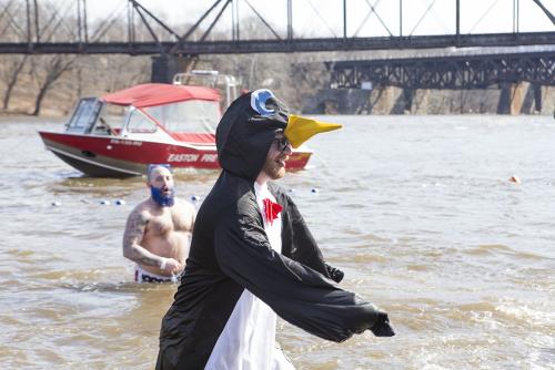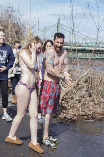 Although air temperatures hung around 37 degrees, a large number of participants arrived early to partake in the festivities before the plunge. It was an amazing atmosphere to be a part of. There was music, free Wawa coffee, costume contests, and hundreds of people just hanging out excitedly waiting to take a dip in the frigid Delaware river.