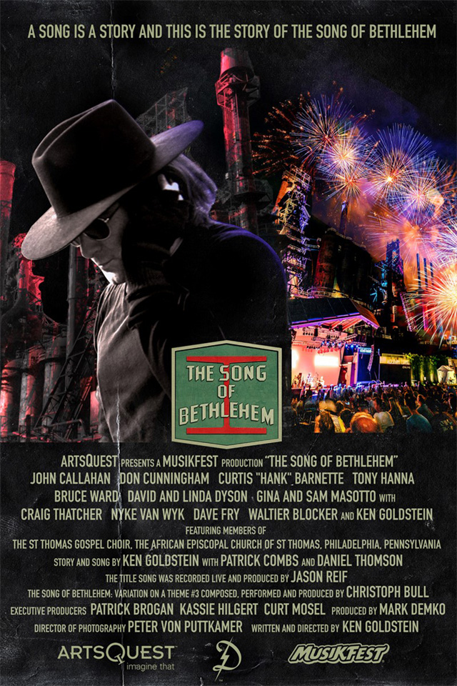 In the coming months, Goldstein plans to take “The Song of Bethlehem” film to select film festivals across the nation, coupling the screenings with performances where possible, to help share the story of how one former industrial town found success in the aftermath of its largest employer closing. This summer, Goldstein will also return to the Lehigh Valley as ArtsQuest’s 2018 Artist in Residence, performing at the Levitt Pavilion Summer Concert Series and at Musikfest.