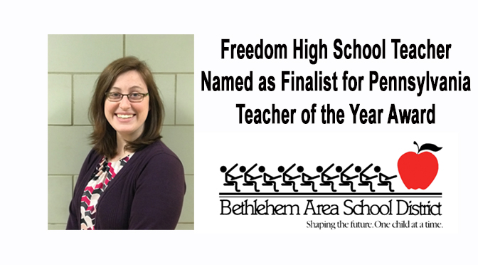 BETHLEHEM, PA (April 2018) – Freedom High School teacher, Amber Chiafulio, was recently named as one of 12 finalists for the 2019 Pennsylvania Teacher of the Year Award.