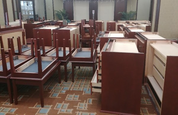 Over 2,000 items from the hotel’s 9 stories were removed by volunteers over a three day span from June 19-21. The donations, which included dressers, tables, lamps, chairs, nightstands, mini-refrigerators, and household supplies, was valued at over $100,000.