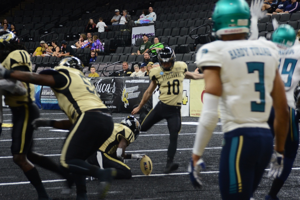 Editor’s Note: I would like to take a moment to thank the staff of the Steelhawks and the PPL Center for a great evening. I was in attendance last night with my seven-year-old son. He loved watching the action on the field. He was also very entertained with the crowd-cams and dancing around between plays with the music that filled the stadium. Obviously, everyone wants to see the home team win, but this does not stop the crowd from having a great time. The evening is filled with big hits, great plays, and lots of fan involvement. I do not feel like there was a single opportunity missed that the Steelhawks family was not engaging the fans in one way or another. There were lots of prizes given away, lots of souvenirs tossed into the crowd, and the players took time to hype up the crowd. Winning would be awesome, but until the team gets its rhythm back, great job to the entire organization for a fun night. Thank you for a great night and Let’s Go Steelhawks!!!