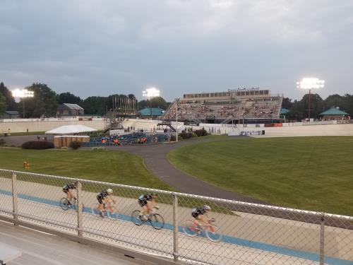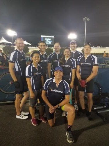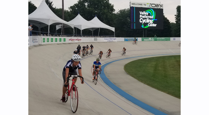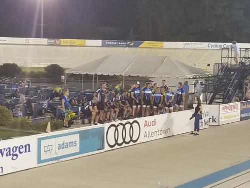 The Corporate Challenge is a race run by the Valley Preferred Cycling Center (VPCC). The VPCC is a 333m concrete velodrome with 33° banked turns located in Trexlertown, PA. The format of the race is an “Italian Pursuit”. In the Italian Pursuit, (6) members of the team line up on one of the straits of the velodrome. At the start of the race all (6) members will start in unison. After the completion of one lap, rider #1 peels off the front of the pace line and departs the race. Rider #2 completes the second lap and then peels off the front of the pace line and departs the race… and so on, and so on. The goal is to complete (6) laps as quickly as possible.