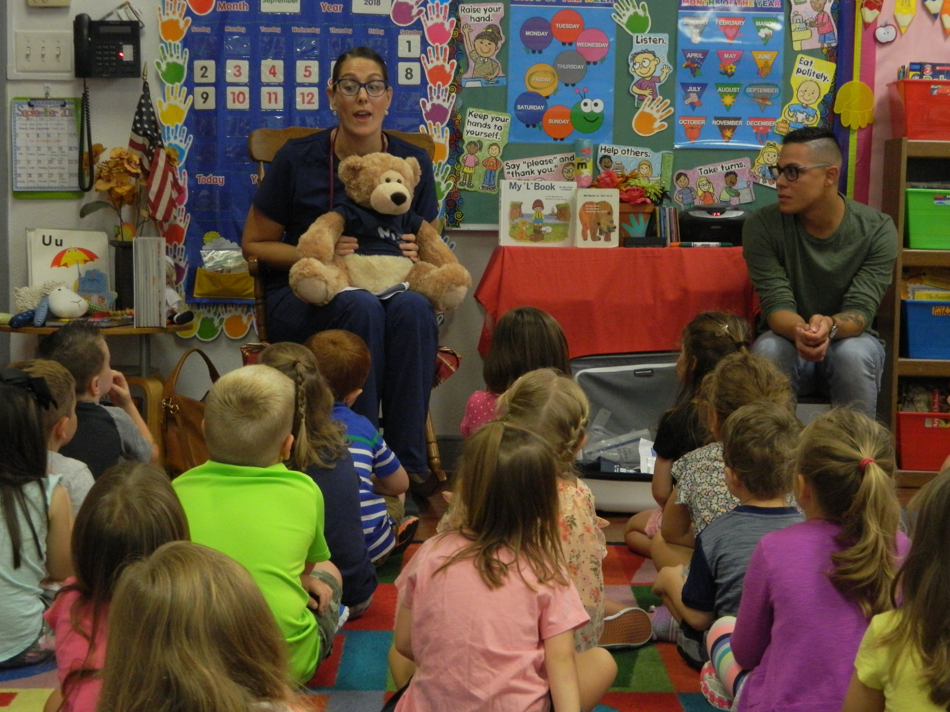 MedExpress Quakertown employees and a stuffed teddy bear visited St. Isidore School Early Childhood students to remind them about healthy habits and what it’s like to visit a heathcare professional when they’re sick or hurt – – a reminder to our little ones that there is nothing to be afraid of.