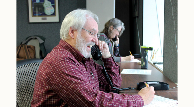 Featured Image: Volunteer Norm Williams answers phone calls. (Photo Courtesy of WDIY)
