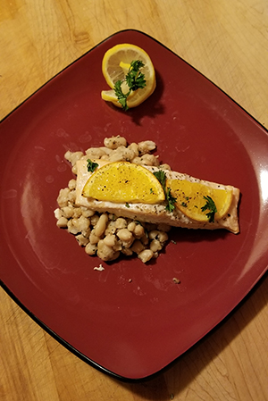 All 3 veggies go well with both fish dishes. You can even mix the white beans with the cooked chard and lay fish on top.