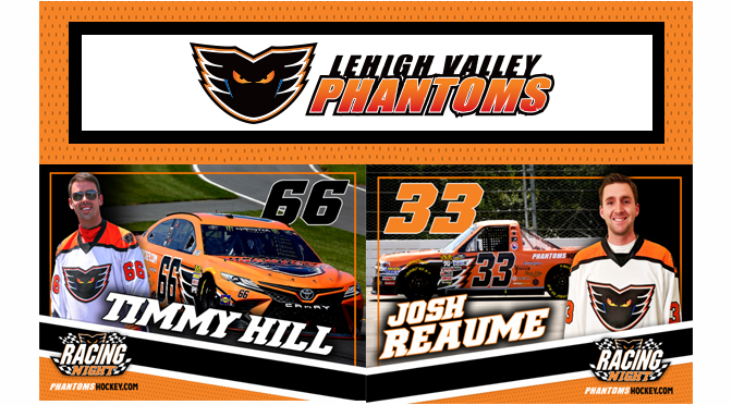 The night will be highlighted with the special appearance of professional drivers, Timmy Hill and Josh Reaume. Timmy Hill drove the Lehigh Valley Phantoms #66 Toyota Camry car in the Monster Energy NASCAR Cup Series race at Pocono Raceway on July 29, 2018. Josh Reaume drove the Phantoms #33 Chevrolet Silverado truck in the Camping World Truck Series race at Pocono Raceway on July 28, 2019.
