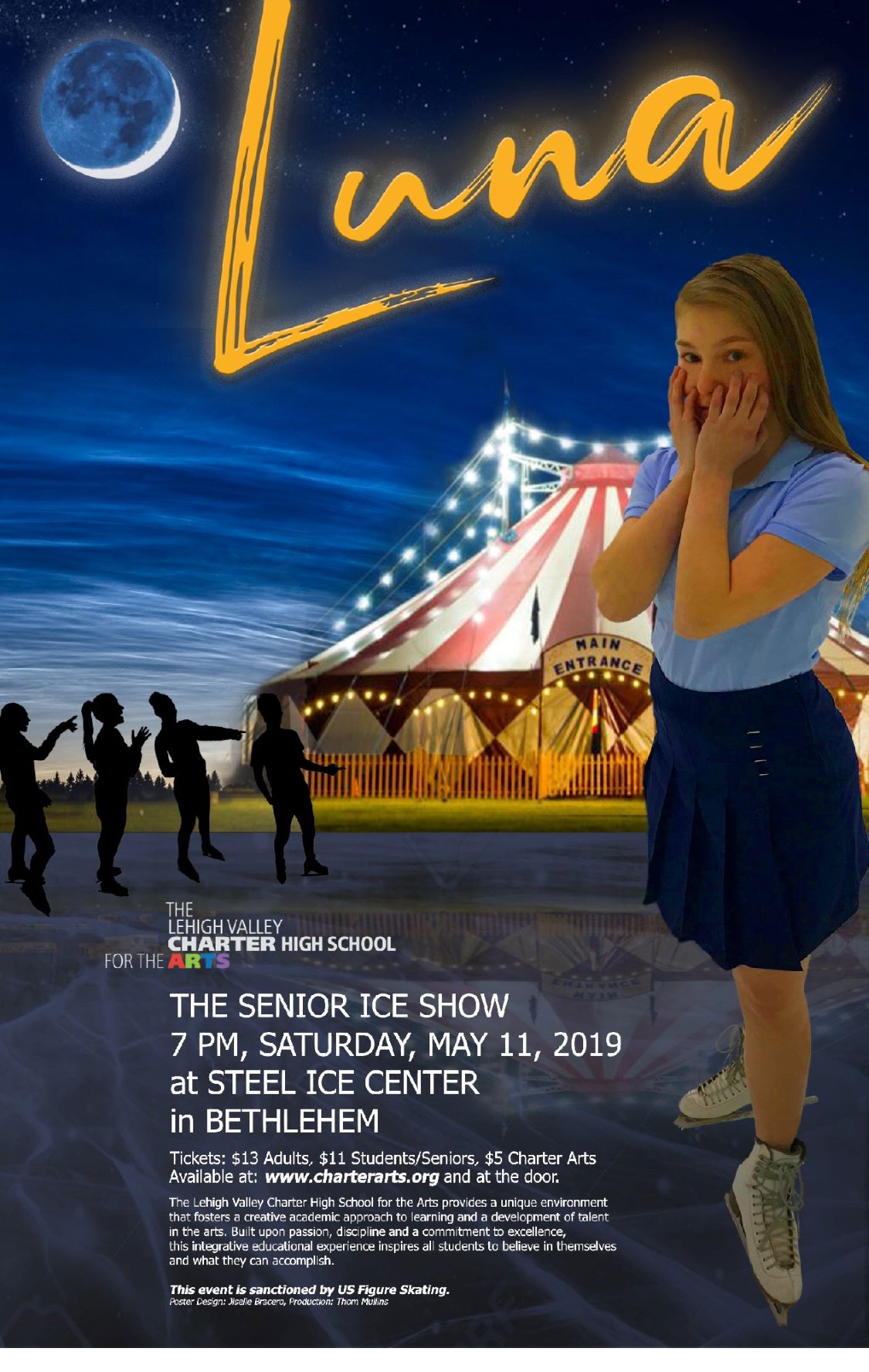BETHLEHEM, PA ( May 11, 2019)— The Lehigh Valley Charter High School for the Arts (Charter Arts) will present its spring ice show: LUNA on Saturday, May 11, 2019, at the Steel Ice Center, located at 320 E. 1st Street, Bethlehem.