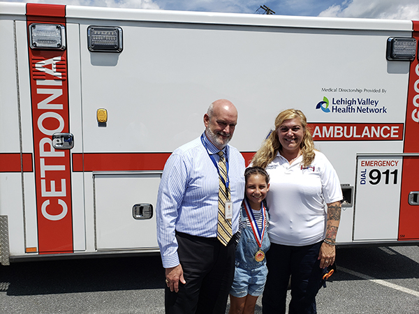 Allentown, Pa., July 3, 2019 – Cetronia Ambulance Corps awarded its first-ever Citizen Hero Award today, July 3, 2019, to 9-year old, Cetronia Elementary School student Mahliyah (Mia) Perez.