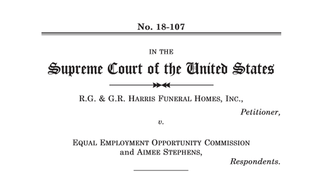 The case R.G. & G.R. Harris Funeral Homes v. Equal Employment Opportunity Commission could reverse longstanding precedent that transgender people are protected from employment discrimination under Title VII of the Civil Rights Act of 1964. The amicus brief asks the Supreme Court to affirm a Sixth Circuit Court of Appeals decision that ruled Ms. Stephen’s employer violated Title VII, which prohibits sex discrimination in employment, when they fired her for being transgender.