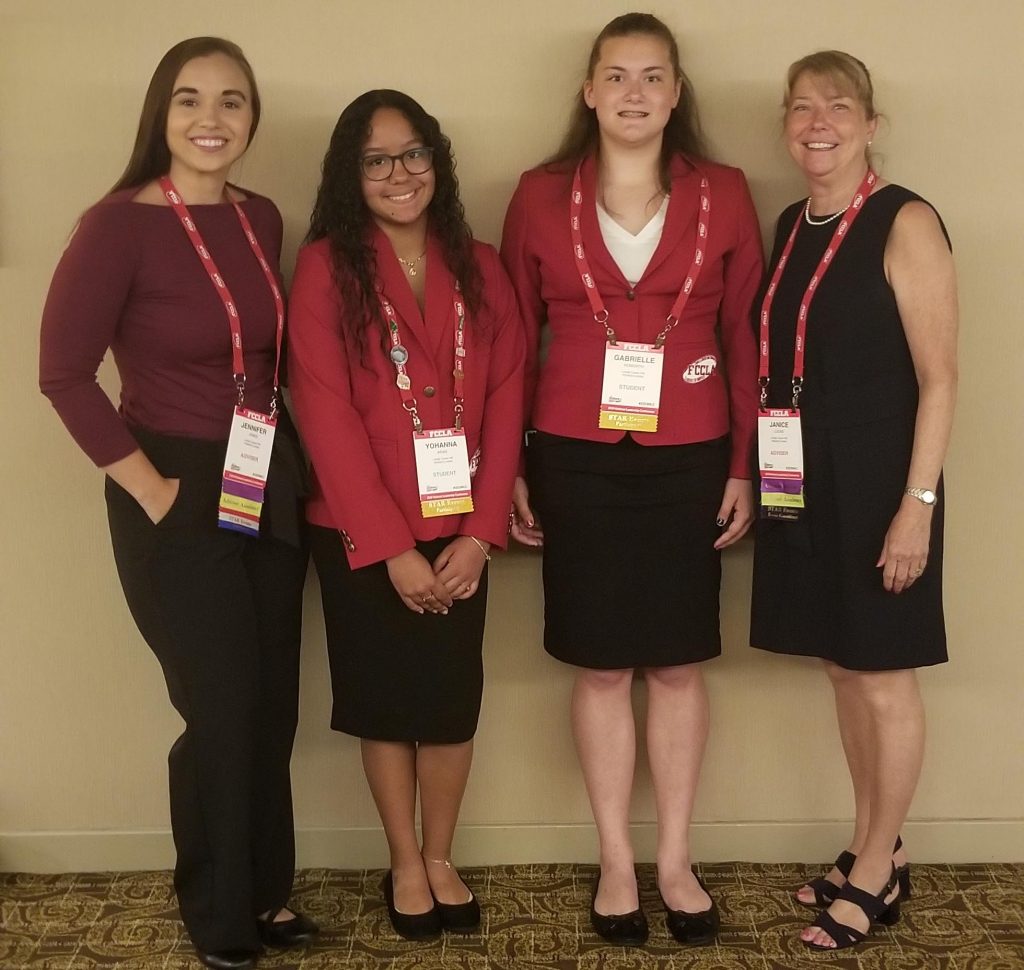Adviser Jennifer Jones, left, student Yohanna Arias Rodriguez, second from left, student Gabrielle Howorth, second from right, and adviser Jan Lucas attended the FCCLA National Leadership Conference in Anaheim, California.