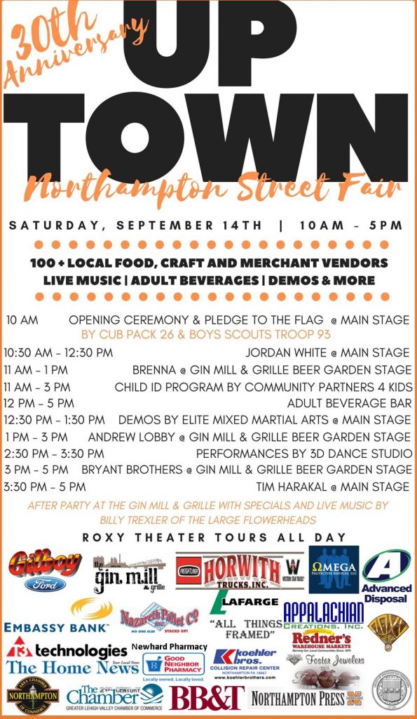 The Northampton Area Chamber of Commerce is celebrating its 30th anniversary of Uptown Northampton Street Fair on Saturday, September 14th 10 am – 5 pm.