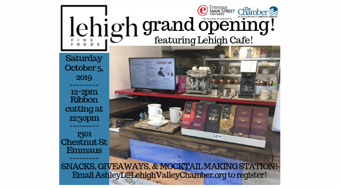 12-2pm grand opening celebration for Lehigh Fine Foods; ribbon cutting at 12:30pm