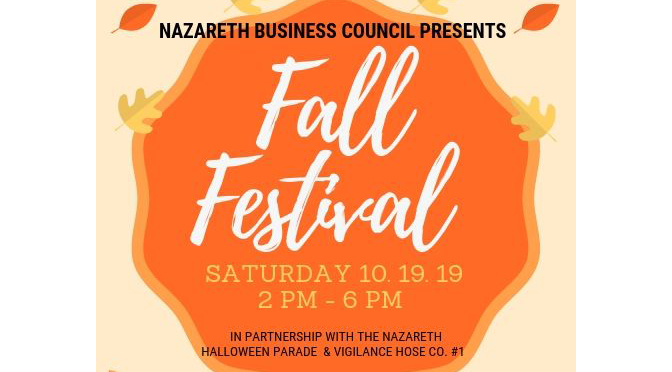 The Nazareth Business Council, a proud partner of the Greater Lehigh Valley Chamber of Commerce has spent the past few months planning for their inaugural Fall Festival. They have partnered with the Nazareth Halloween Parade and Vigilance Hose Co #1 to make a full day celebration in Nazareth on Saturday, October 19th. Come FALL in love with Nazareth even more with friends, family, employees, coworkers, residents and visitors alike down South Main Street from 2 pm – 6 pm; right after the Nazareth Halloween Parade. There will be entertainment for all ages ranging from pumpkin painting and Trunk or Treating. Locally brewed craft beer will be served by Birthright Brewing Co. and hand crafted cocktails will be served by Triple Sun Spirits. Festival goers won’t want to miss Main Street businesses and vendors selling jewelry, home décor, clothing, and more. “We wanted to partner with the Vigilance Hose Co #1 in an effort to keep people downtown for the day while enjoying all that Nazareth has to offer,” mentioned Jessica O’Donnell who serves as NBC liaison and GLVCC EVP of Affiliate Chambers. ”Since the parade brings the community together, we want to continue that sense of community throughout the day and have residents and visitors FALL in love even more with Nazareth!”, O’Donnell said. All are encouraged to come hungry, thirsty and ready to shop with vendors and other local downtown businesses. 10% of the food and beverage sales will be donated back to NBC to continue community initiatives such as this one.