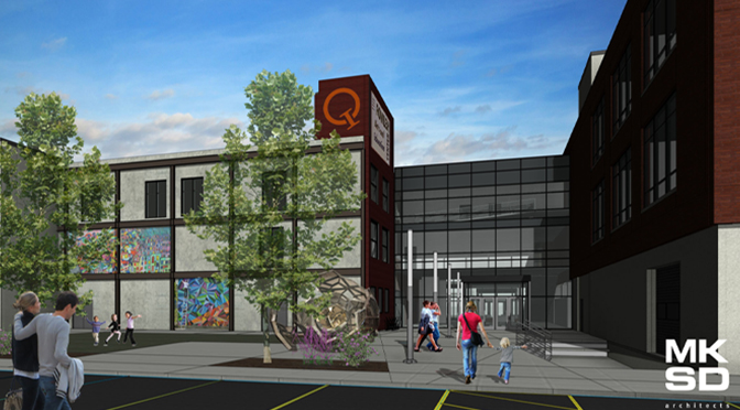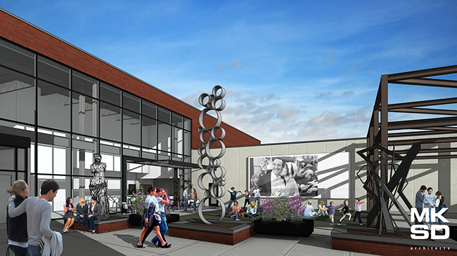The two outdoors plazas will be the gateways to the new 80,000-square-foot, three-story Cultural Center, which will include both new construction and adaptive reuse of two buildings located on the current Banana Factory site. The 3rd Street Arts Plaza, proposed to be 5,300-square feet, will be a flexible outdoor venue for interactive public art installations and digital projections by regional and national artists, as well as a space for events, weddings, parties and festivals like the growing SouthSide Arts and Music Festival, which takes place each spring.