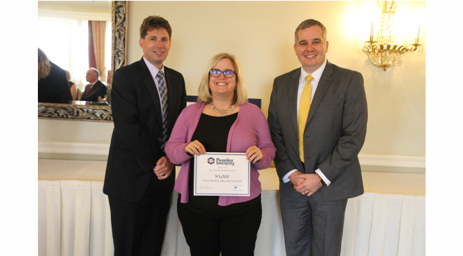 Picture from Left to right: Ian Matlack, Senior Vice President Division Manager, Peoples Security Bank & Trust, Lisa Walkiewicz, Executive Director, Via of the Lehigh Valley, and Jeffrey Drobins, Senior Vice President Commercial Division Manager, Peoples Security Bank & Trust.