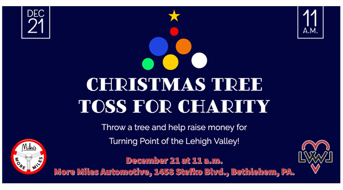 More Miles Automotive, in conjunction with Lehigh Valley with Love Media, will host the ‘Peter Kearns Memorial Christmas Tree Toss’ with proceeds going to Turning Point of the Lehigh Valley. The public is encouraged to attend and throw Christmas trees for distance in an effort to be this year’s champion! There will also be small giveaways and refreshments.
