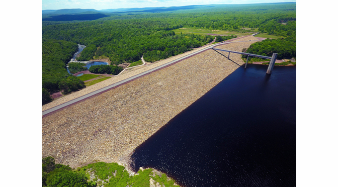 Featured Image: Aerial photograph of the Francis E. Walter Dam and Reservoir, taken from the eastern side of the dam. (Photo Credit – U.S. Army Corps of Engineers)