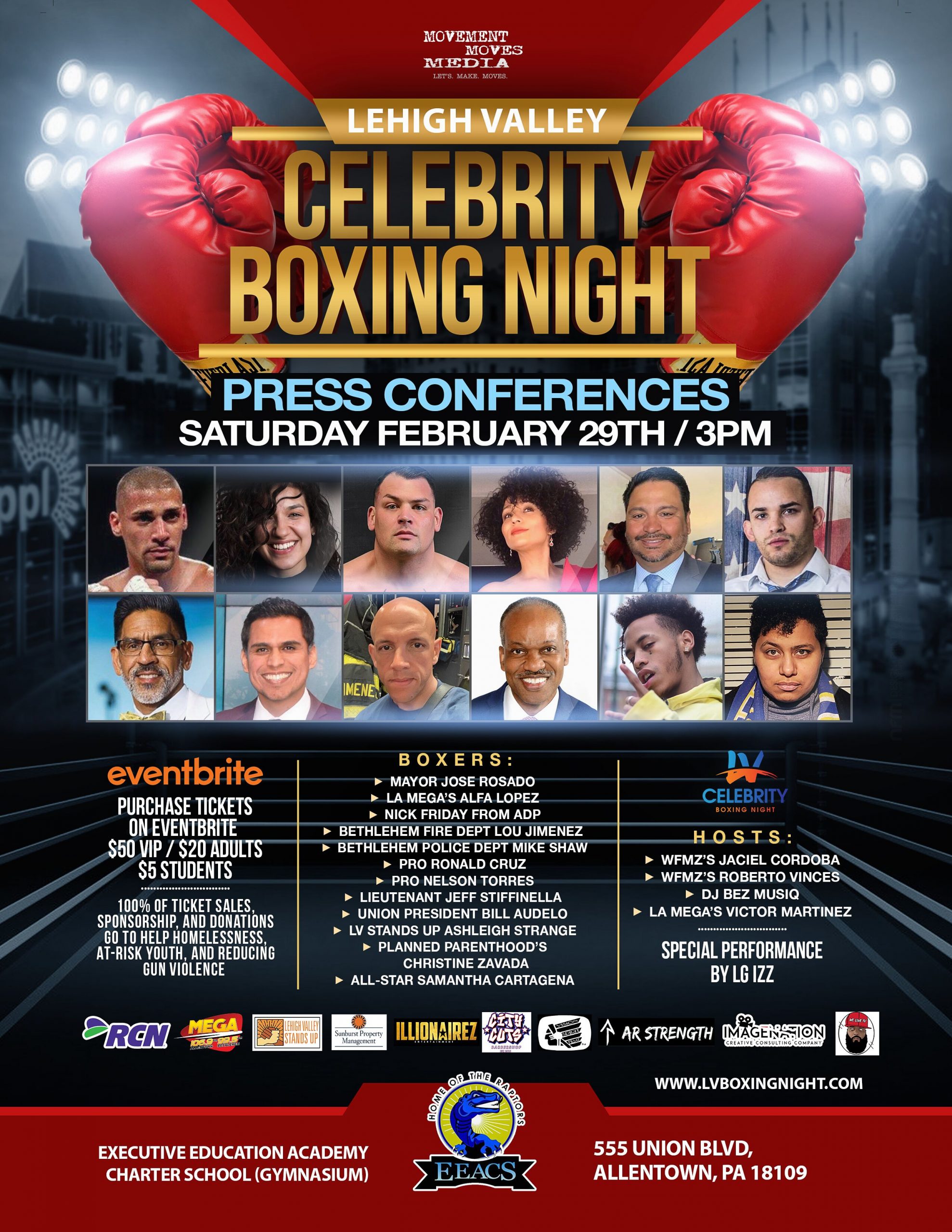 Sat. February 29, 2020 3:00PM Press Conference to announce first Lehigh Valley Celebrity boxing event to raise money to support programs positively affecting young people of the Lehigh Valley.