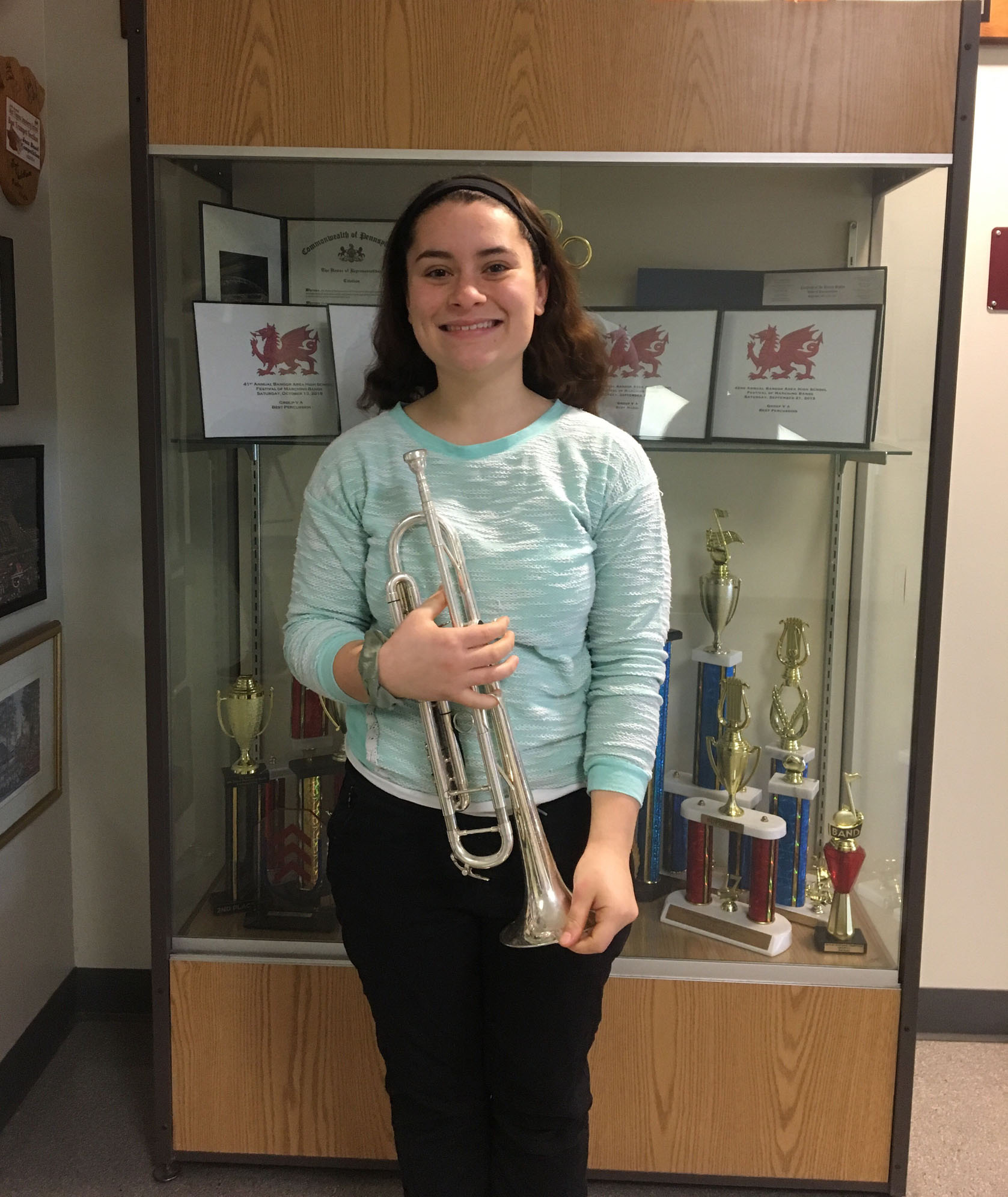 Multi-instrumentalist Steffani Smith plays both trumpet and piano. She performs in numerous Bangor Area High School ensembles including concert band, symphonic band, jazz band, marching band, pep band and pit orchestra, just to name a few. She also participates in several extracurricular ensembles including the COTA Cats in the COTA Jazz Festival, the Allentown Band side-by-side concert, County Band, the Moravian College Alfa Track program and the HMI jazz combo program at Penn State. Smith is also involved with the PMEA District Band, District Jazz and Region Band. She wants to study music education in college, as well as join the Army before pursuing her career post-graduate.